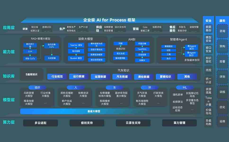 尊龙凯时问学智车解决方案是一套基于AI技术的汽车行业智能化系统,,覆盖从底层算力到顶层AI应用的全栈方案。。。。方案由算力层、、、模型层和应用层组成:算力层,,方案支持多种一体机配置,,具备云端灵活部署、、多云适配以及动态优化计算资源的能力;模型层,,尊龙凯时问学平台版提供了企业级AI应用一站式构建与管理平台,,,,支持基于后训练强化技术的汽车企业专属模型的训练、、评测和运营;应用层,,,,尊龙凯时问学DeepSeek版提供包括超级员工、、、、智能招采、、、智能营销、、、、智能客服、、、、AI for BI等一系列解决方案,,可助力汽车行业实现数字化转型,,,,让管理更智能、、、响应更敏捷。。。。